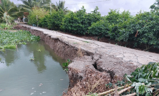 Điểm sạt lở, sụt lún ở khu vực Giáo xứ Vườn Xoài, xã Thuận Nghĩa Hòa, huyện Thạnh Hóa