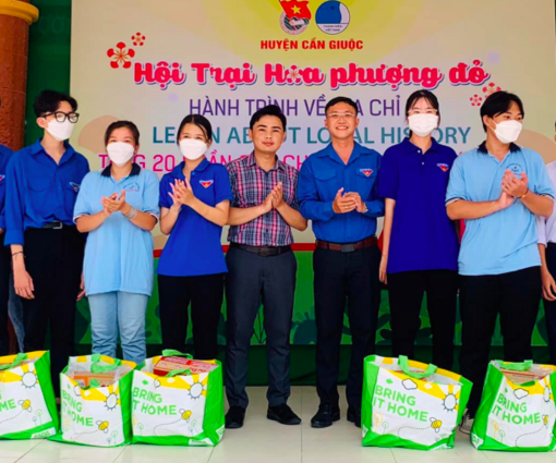 Thầy Trương Trần Hoàng Du (thứ 4, trái qua, Trường THPT Nguyễn Đình Chiểu, huyện Cần Giuộc) tại Hội trại Hoa phượng đỏ