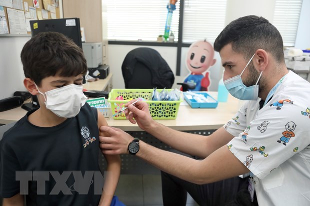 Nhân viên y tế tiêm vaccine phòng COVID-19 cho trẻ em tại Tel Aviv, Israel, ngày 25/11/2021. (Ảnh: THX/TTXVN)