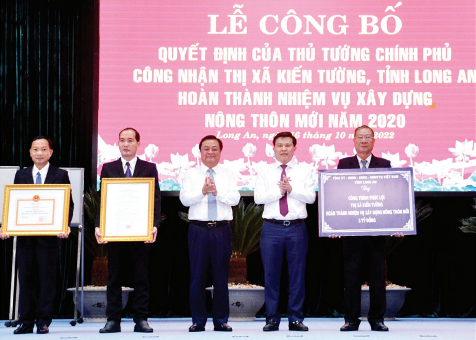 10 năm xây dựng nông thôn mới (XDNTM) là một chặng đường dài với sự tập trung chỉ đạo, triển khai, thực hiện quyết liệt của cả hệ thống chính trị và nhân dân thị xã Kiến Tường, tỉnh Long An. Với sự nỗ lực không ngừng, thị xã Kiến Tường được Thủ tướng Chính phủ công nhận hoàn thành nhiệm vụ XDNTM. Đây là nguồn cổ vũ, động viên to lớn để địa phương tiếp tục nỗ lực vươn lên, đạt nhiều thành tựu trên bước đường đổi mới.