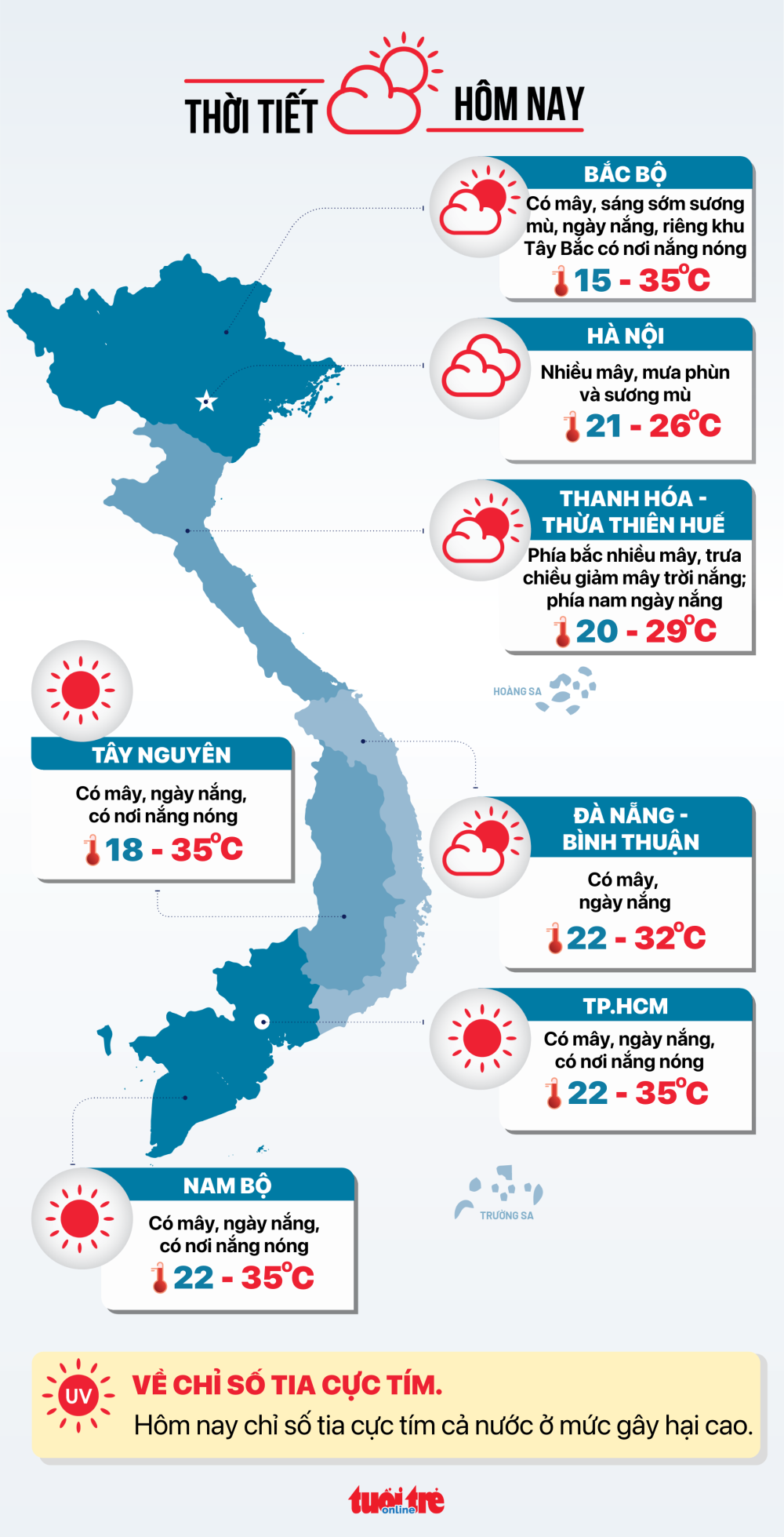 Hôm nay 04/3, thời tiết cả nước chủ đạo là nắng, Bắc Bộ sáng trời mù, lạnh nhưng ngày hửng nắng. Nam Bộ nắng nóng, oi bức.