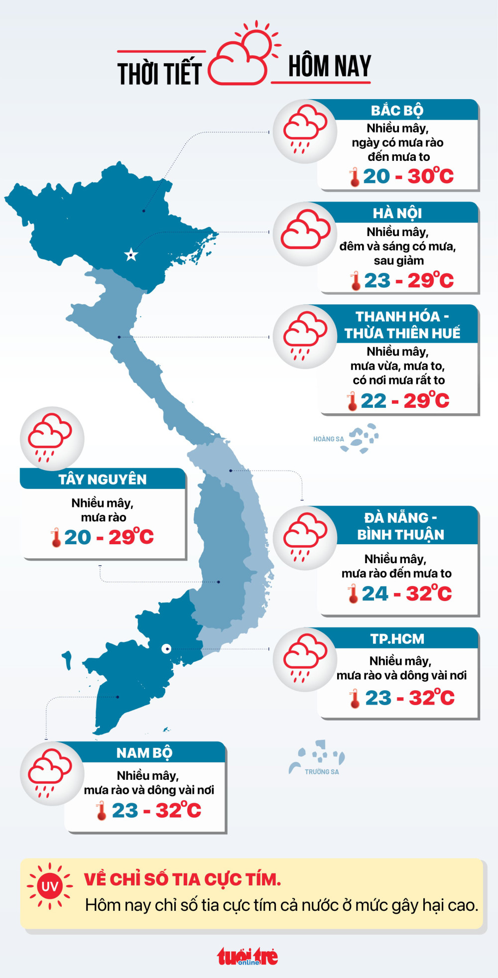 Hôm nay 23/9, không khí lạnh lan tới Bắc Trung Bộ gây mưa to cho khu vực này. Bắc Bộ và Nam Bộ giảm mưa.