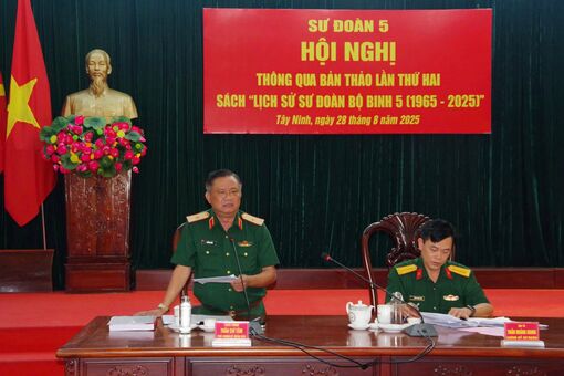 Ngày 28/8, Sư đoàn 5 (Quân khu 7) tổ chức Hội nghị thông qua bản thảo lần thứ hai sách “Lịch sử Sư đoàn Bộ binh 5, giai đoạn 1965–2025”. Thiếu tướng Trần Chí Tâm - Phó Chính ủy Quân khu 7 dự và phát biểu chỉ đạo hội nghị.