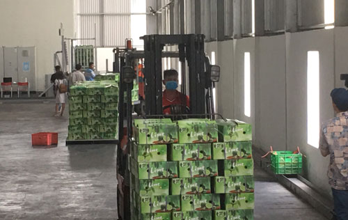Công nhân xếp dỡ hàng hóa trong kho Công ty TNHH Bảo quản rau quả CASS