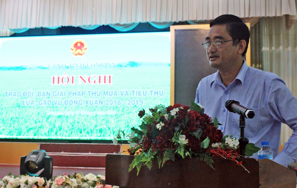 Sáng 08/3, Phó Chủ tịch UBND tỉnh Long An – Phạm Văn Cảnh chủ trì Hội nghị Trao đổi, bàn giải pháp thu mua và tiêu thụ lúa, gạo vụ Đông Xuân 2018 - 2019 trên địa bàn tỉnh với sự tham dự của trên 60 đại diện doanh nghiệp, hợp tác xã trên địa bàn tỉnh.