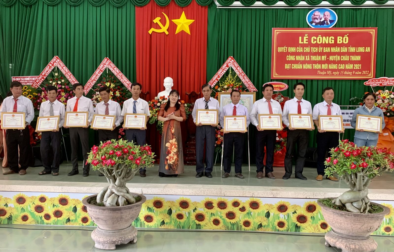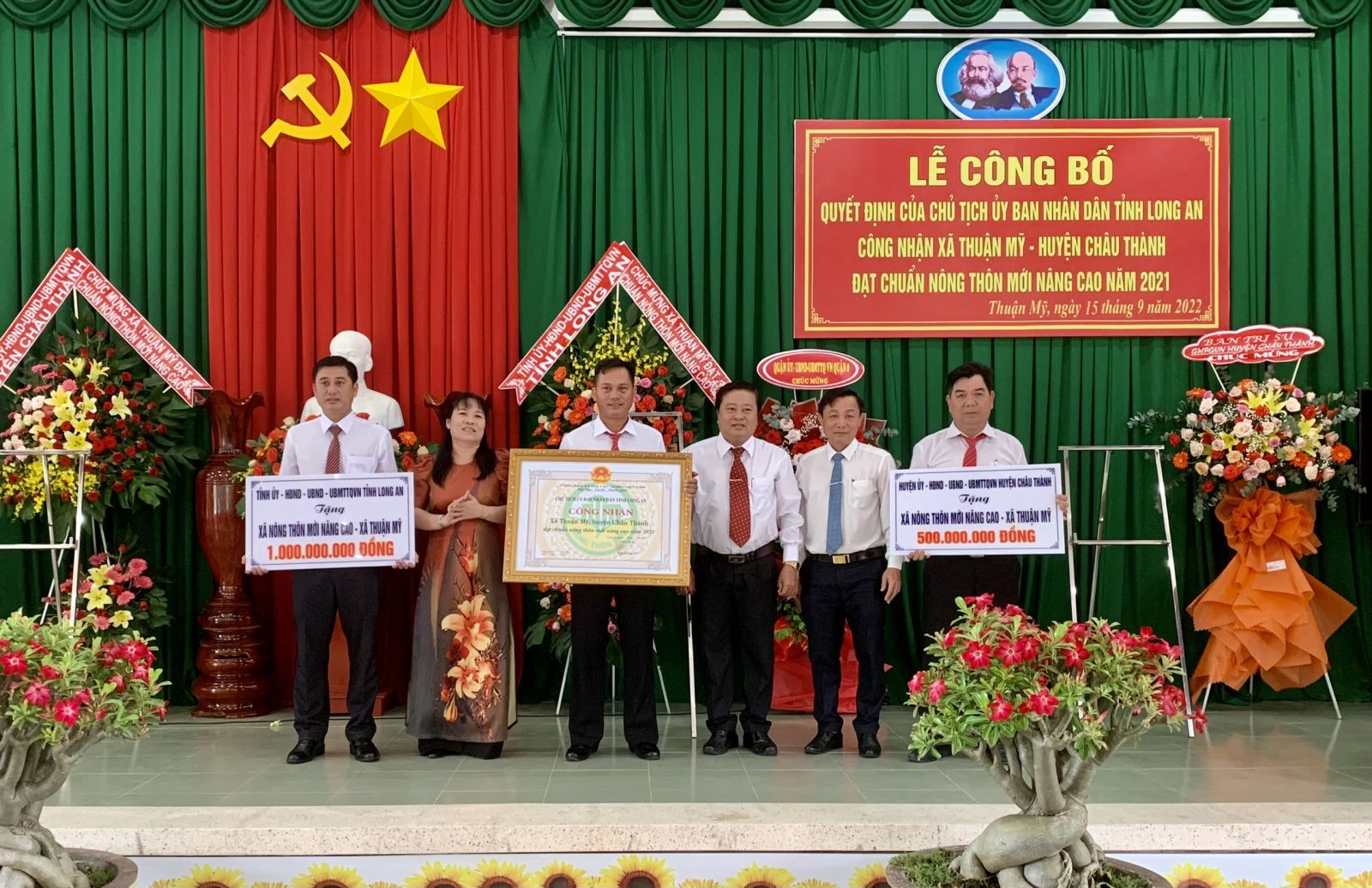 Ngày 15/9, UBND huyện Châu Thành tổ chức Lễ công bố quyết định của Chủ tịch UBND tỉnh Long An công nhận xã Thuận Mỹ đạt chuẩn nông thôn mới nâng cao. Đến dự có Ủy viên Ban Thường vụ Tỉnh ủy, Chủ nhiệm Ủy Ban kiểm tra Tỉnh ủy - Trần Văn Dũng; Phó Giám đốc Sở Nông nghiệp và Phát triển nông thôn tỉnh – Hồ Thị Ngọc Lan; Bí thư Huyện ủy Châu Thành – Lê Quốc Dũng; nguyên lãnh đạo tỉnh, huyện qua các thời kỳ cùng lãnh đạo, cán bộ và nhân dân xã Thuận Mỹ.