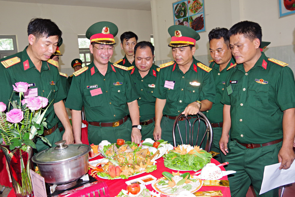 Thượng tá Trần Đức Thế (thứ ba từ phải qua) cùng chỉ huy Sư đoàn, các đơn vị kiểm tra bảo đảm bữa ăn ngày lễ của bộ đội
