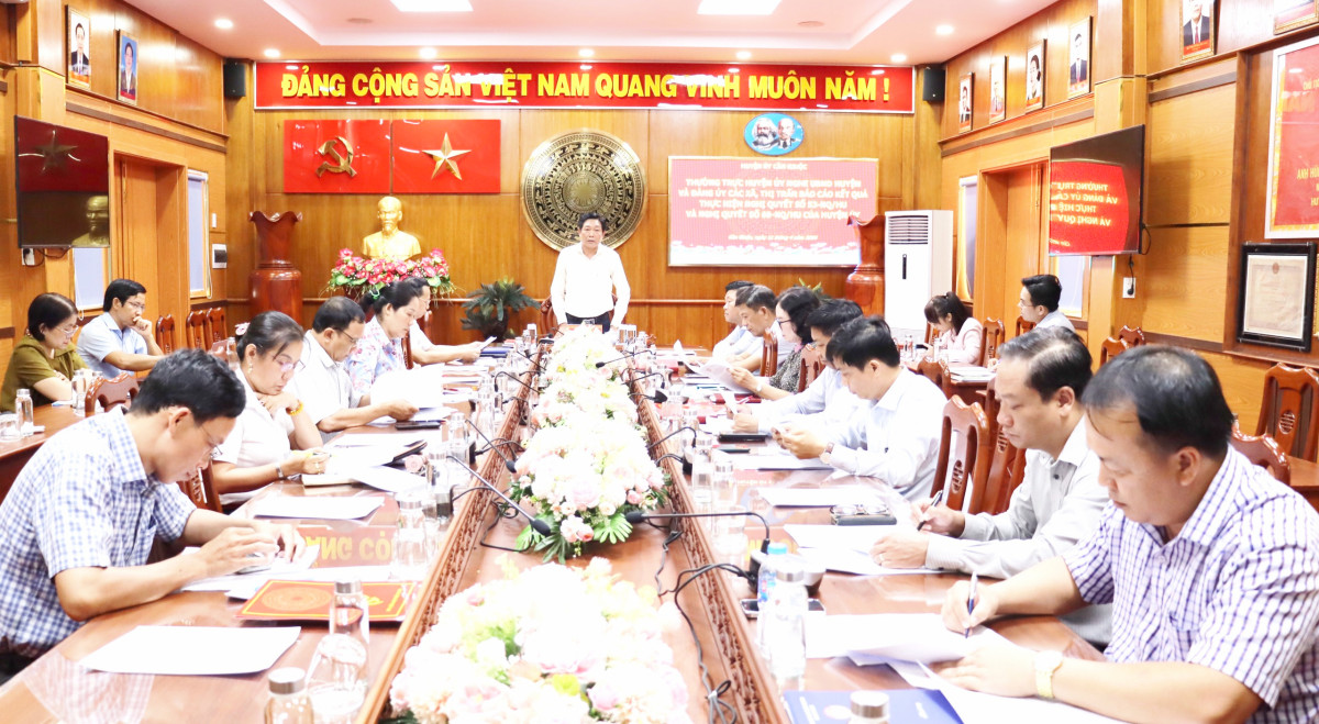 Thường trực Huyện ủy Cần Giuộc nghe báo cáo kết quả thực hiện Nghị quyết số 53 và số 69-NQ/HU