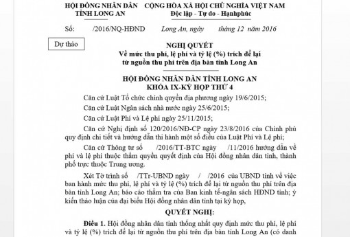 Tiếp nhận ý kiến bạn đọc 2 dự thảo về phí, lệ phí trên địa bàn tỉnh Long An