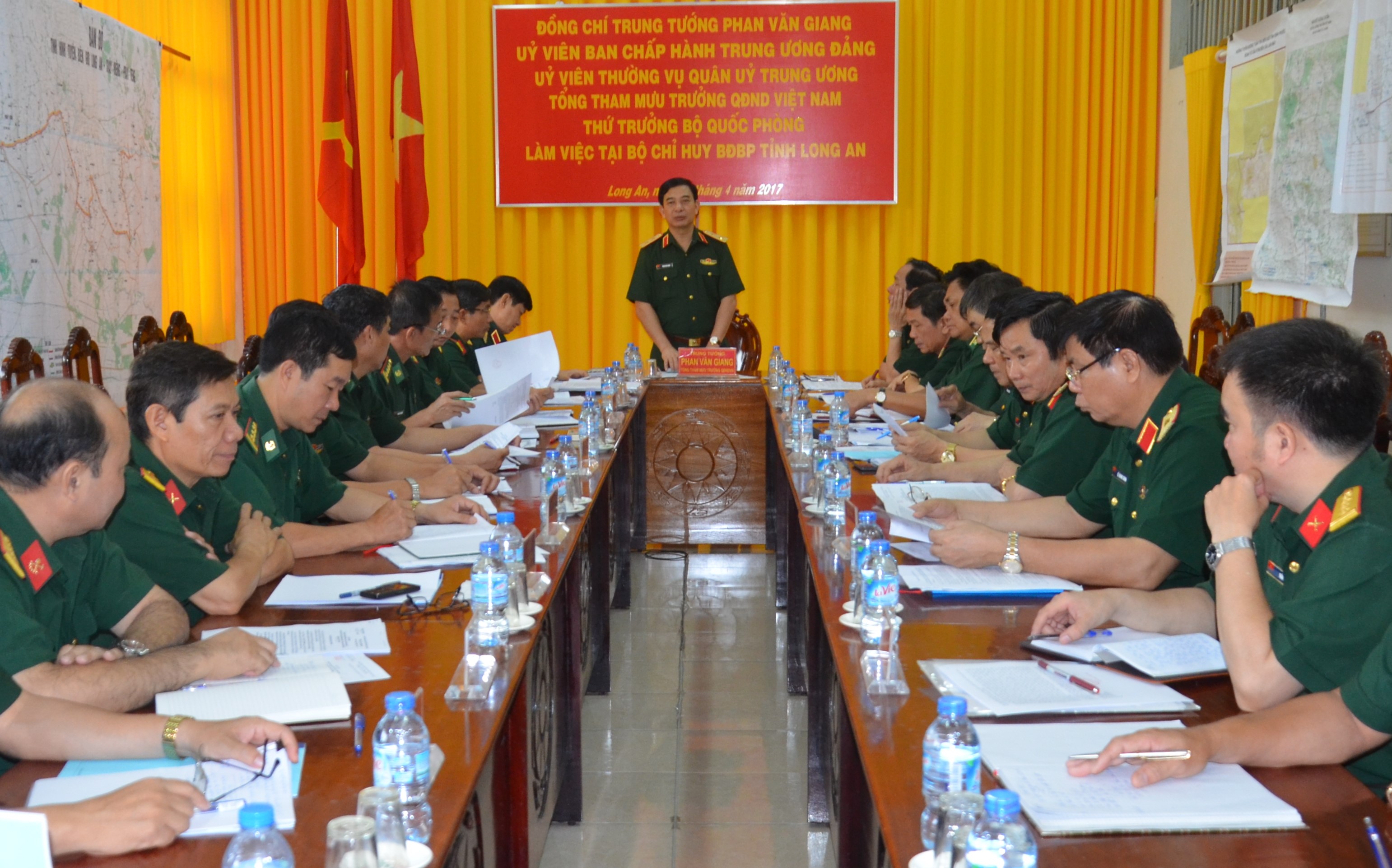 Ngày 22/4, Đoàn công tác Bộ Quốc phòng do Trung tướng Phan Văn Giang - Ủy viên Ban Chấp hành Trung ương Đảng, Ủy viên Thường vụ Quân ủy Trung ương - Tổng Tham mưu trưởng Quân đội nhân dân Việt Nam - Thứ trưởng Bộ Quốc phòng làm Trưởng đoàn đến thăm và làm việc với Bộ Chỉ huy Bộ đội Biên phòng tỉnh Long An.