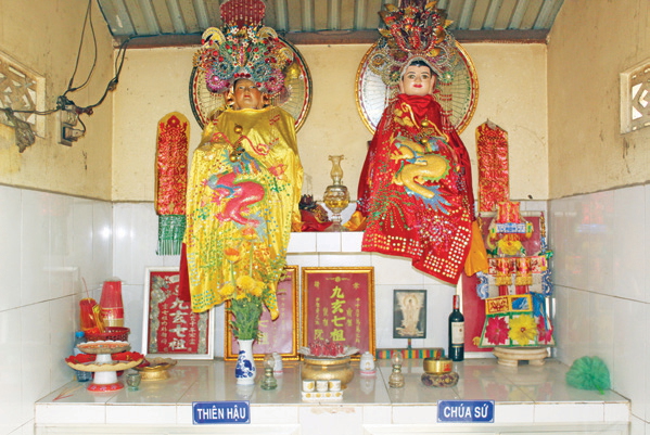 Bà Thiên Hậu được người Việt phối thờ cùng Bà Chúa Xứ ở miếu Bà Ô Rừng Cầy (phường Gia Lộc)