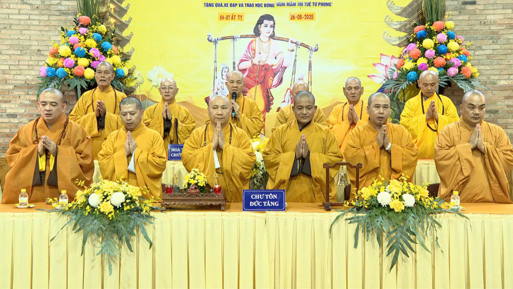 Sáng 26/8, chùa Thiền Lâm – Gò Kén phối hợp Hội Bảo trợ người khuyết tật, người nghèo và Bảo vệ quyền trẻ em tỉnh Tây Ninh tổ chức Đại lễ Vu Lan báo hiếu và tặng quà, xe đạp, trao học bổng “Ươm mầm trí tuệ Từ Phong”.
