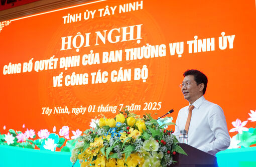 Chiều 01/7, Tỉnh ủy Tây Ninh tổ chức công bố quyết định của Ban Thường vụ Tỉnh ủy về công tác cán bộ. Phó Bí thư Thường trực Tỉnh ủy, Chủ tịch HĐND tỉnh - Nguyễn Mạnh Hùng chủ trì hội nghị.