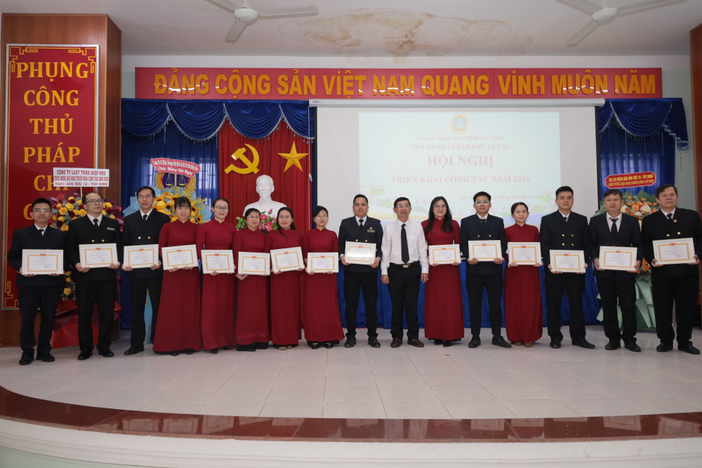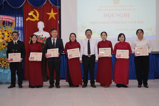 Chiều 11/12, Tòa án Nhân dân (TAND) khu vực 12 tổ chức Hội nghị tổng kết công tác năm 2025 và triển khai nhiệm vụ trọng tâm công tác năm 2026. Tham dự có Phó Chánh án TAND tỉnh Tây Ninh Võ Văn Ngầu; đại diện lãnh đạo Cơ quan điều tra, Viện Kiểm sát và Thi hành án khu vực 12; các xã, phường trên địa bàn.