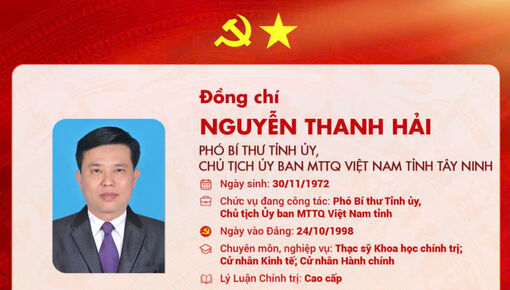Báo và Phát thanh, Truyền hình Tây Ninh trân trọng giới thiệu tóm tắt quá trình công tác của đồng chí Phó Bí thư Tỉnh ủy, Chủ tịch UBMTTQVN tỉnh Tây Ninh Nguyễn Thanh Hải.