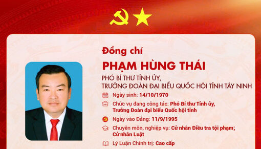 Báo và Phát thanh, Truyền hình Tây Ninh trân trọng giới thiệu tóm tắt quá trình công tác của đồng chí Phó Bí thư Tỉnh ủy, Trưởng đoàn Đại biểu Quốc hội tỉnh Tây Ninh Phạm Hùng Thái.