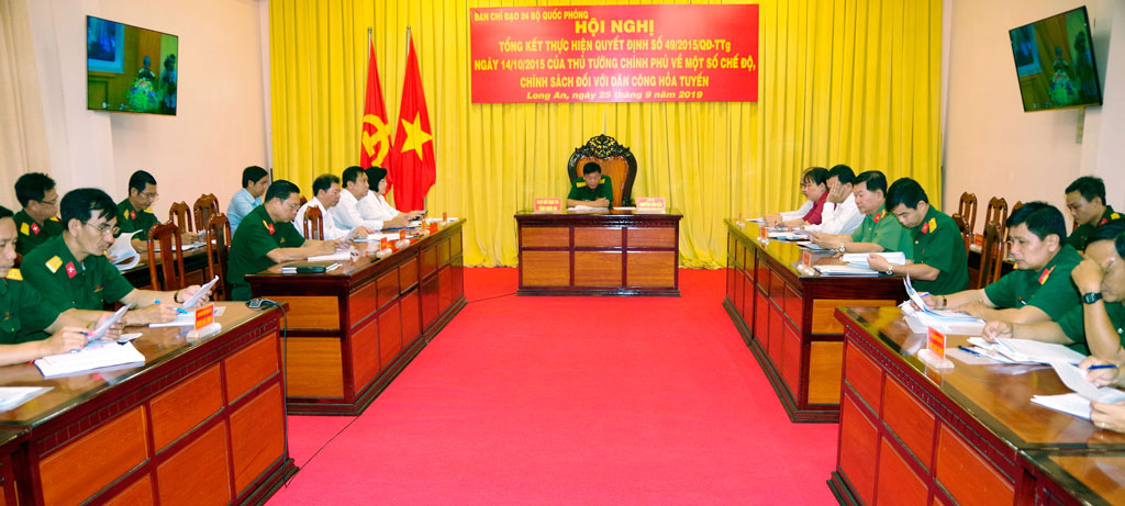 Ngày 25/9, Ban Chỉ đạo 24 - Bộ Quốc phòng tổ chức Hội nghị trực tuyến tổng kết 4 năm thực hiện Quyết định số 49/2015/QĐ-TTg của Thủ tướng Chính phủ về một số chế độ, chính sách đối với dân công hỏa tuyến tham gia kháng chiến chống Pháp, chống Mỹ, chiến tranh bảo vệ Tổ quốc và làm nhiệm vụ quốc tế. Các thành viên Ban Chỉ đạo 24 - tỉnh Long An và Ban Chỉ huy Quân sự 15 huyện, thị xã, thành phố trong tỉnh tham dự.
