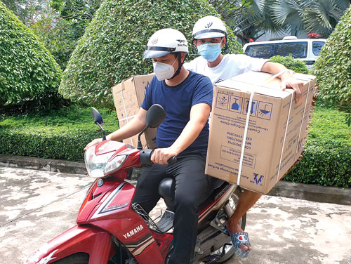 Thành viên Trạm y tế lưu động xã Nhị Thành tham gia vận chuyến trang thiết bị y tế phục vụ công tác phòng, chống dịch của địa phương