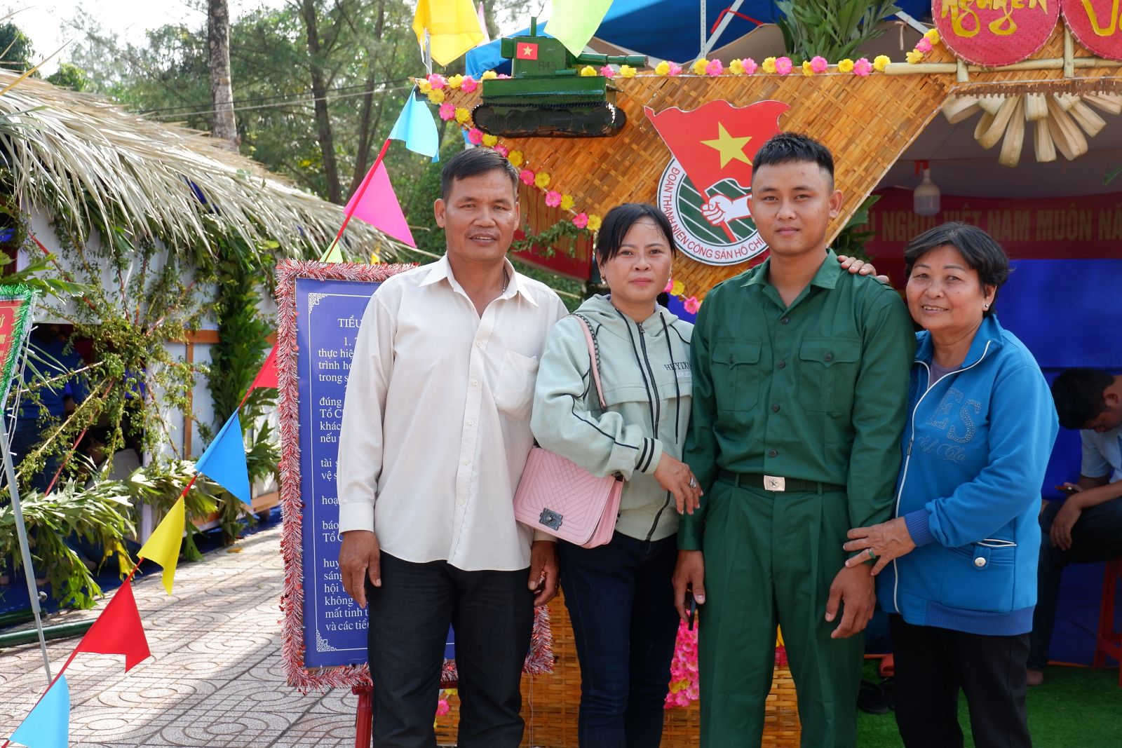 Gia đình ông Nguyễn Văn Trí chụp ảnh lưu niệm trước khi tiễn con lên đường