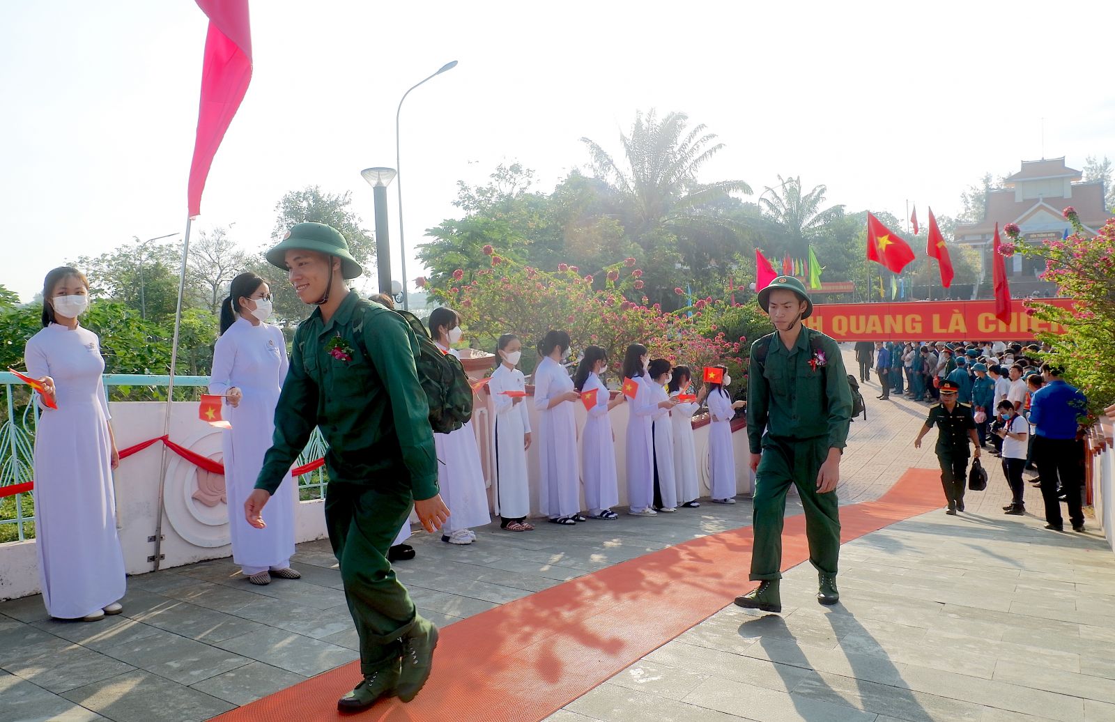 Từ sáng sớm, tại Khu Di tích lịch sử Vàm Nhựt Tảo (huyện Tân Trụ, tỉnh Long An) sôi nổi tiếng nói cười, động viên, dặn dò của người thân tiễn con, cháu lên đường nhập ngũ. Những ánh mắt rạng rỡ hay những đôi mắt đỏ hoe của người thân để lại thật nhiều cảm xúc tại buổi giao, nhận quân.