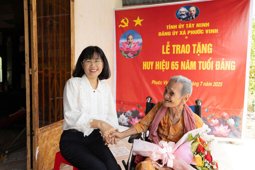 Ngày 14/7, Đảng ủy xã Phước Vinh tổ chức Lễ trao tặng Huy hiệu 65 năm tuổi Đảng cho đảng viên Rum Thị Chanh - ấp Hòa Đông A, xã Phước Vinh, tỉnh Tây Ninh. Ủy viên Ban Thường vụ Tỉnh ủy, Phó Chủ tịch HĐND tỉnh Nguyễn Đài Thy đến dự.