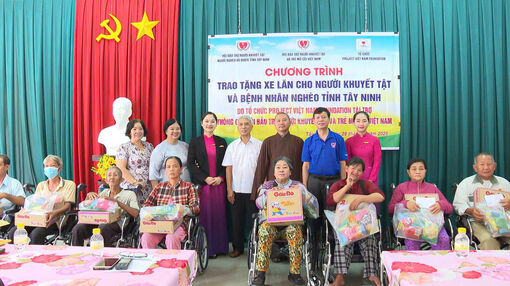 Sáng 29/8, Hội Bảo trợ người khuyết tật và trẻ mồ côi Việt Nam phối hợp Hội Bảo trợ người khuyết tật, người nghèo và bảo vệ quyền trẻ em tỉnh Tây Ninh, tổ chức Project Vietnam Foundation tổ chức Lễ trao tặng xe lăn cho người khuyết tật và bệnh nhân nghèo có hoàn cảnh khó khăn trên địa bàn tỉnh.