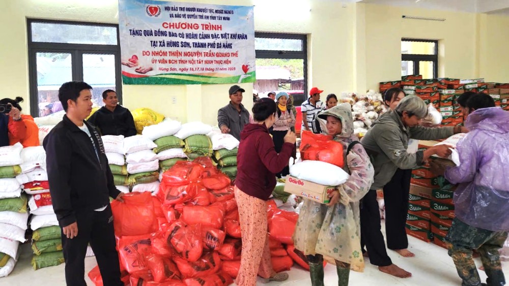 Đoàn từ thiện Hội Bảo trợ người khuyết tật, người nghèo và Bảo vệ quyền trẻ em tỉnh Tây Ninh đến trao quà và động viên người dân miền núi tỉnh Quảng Nam bị ảnh hưởng bão lũ.