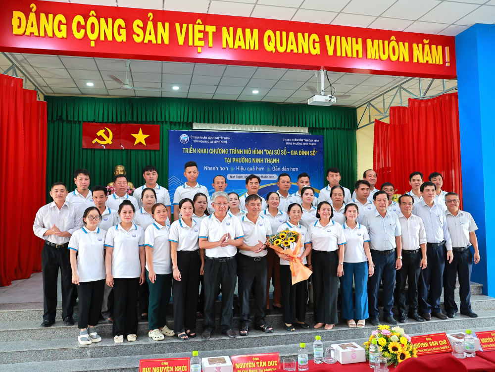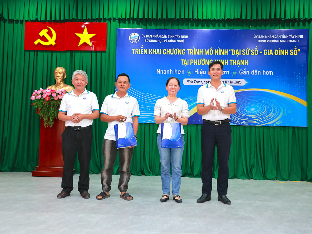 Chiều 28/11, Sở Khoa học và Công nghệ (KH&CN) phối hợp UBND phường Ninh Thạnh, tỉnh Tây Ninh triển khai chương trình mô hình điểm “Đại sứ số - Gia đình số” tại phường Ninh Thạnh.