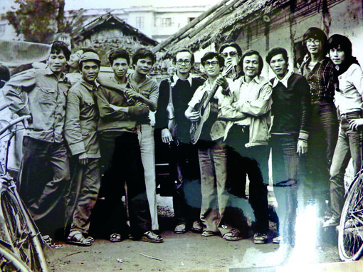 Nhạc sĩ Trịnh Công Sơn chụp ảnh lưu niệm với các học viên khóa 2, Trường Viết văn Nguyễn Du (Khoa Viết văn, Trường Đại học Văn hóa Hà Nội) vào năm 1985 (Ảnh minh họa)