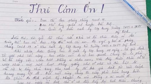 Trước lúc rời khu cách ly, viết thư cảm ơn tuyến đầu chống dịch