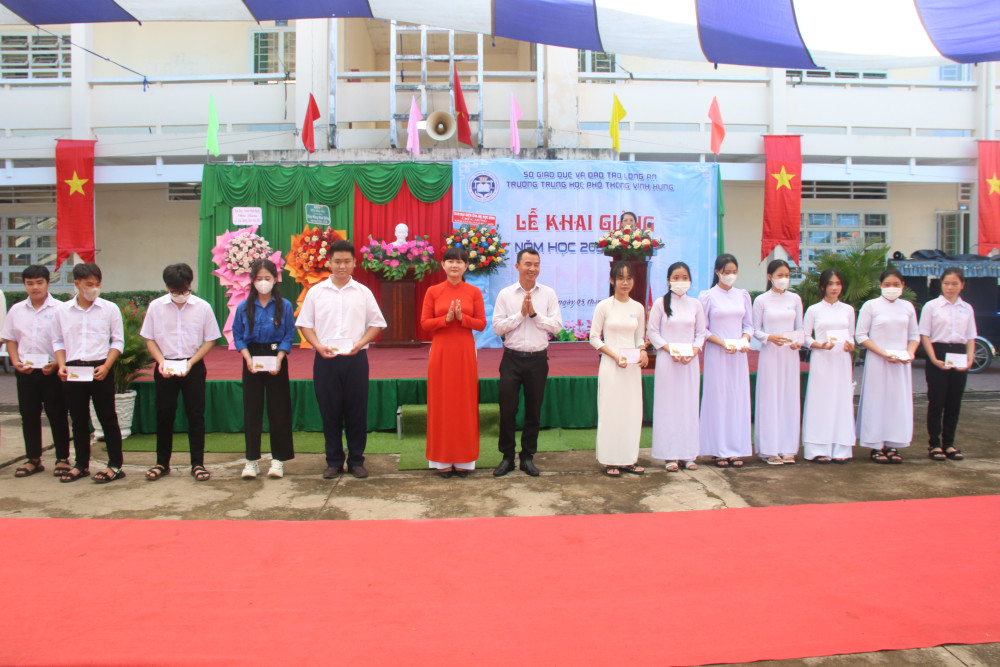 Sáng 05/9, Trường THPT Vĩnh Hưng, huyện Vĩnh Hưng, tỉnh Long An tổ chức Lễ khai giảng năm học 2024-2025. Ủy viên Ban Thường vụ Tỉnh ủy, Trưởng ban Tổ chức Tỉnh ủy - Lê Thanh Nghiêm đến dự.