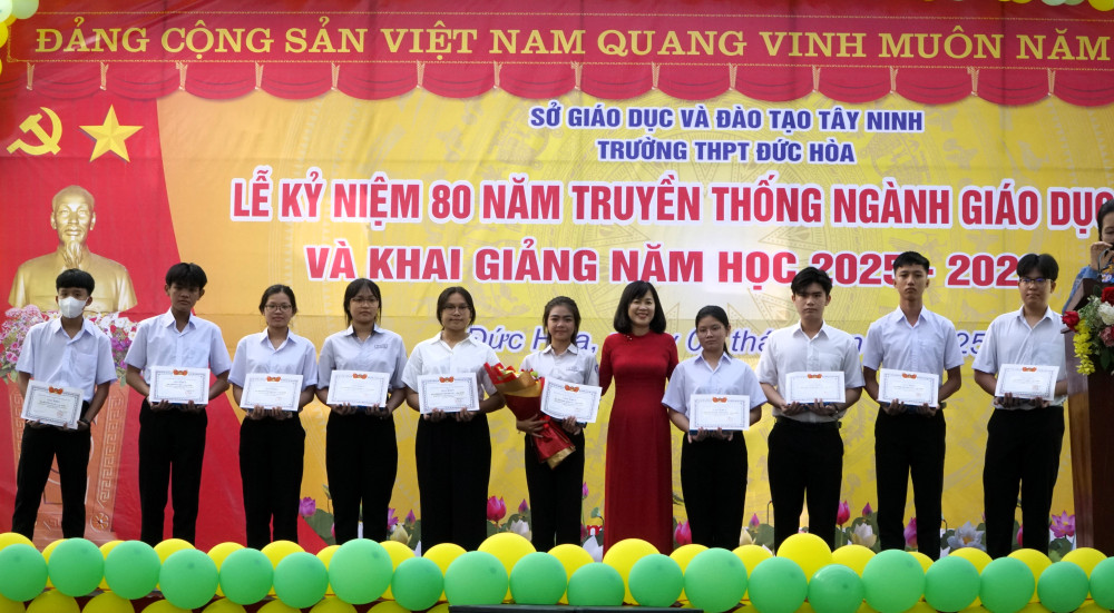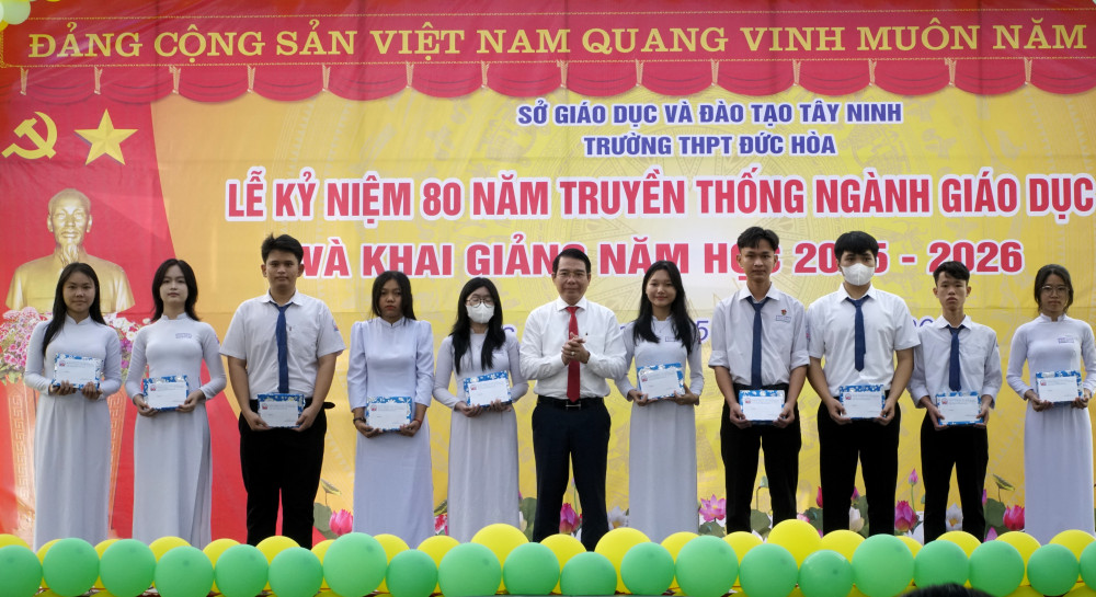 Sáng 05/9, Trường THPT Đức Hòa (xã Đức Hòa, tỉnh Tây Ninh) tổ chức Lễ kỷ niệm 80 năm truyền thống ngành Giáo dục và khai giảng năm học 2025-2026. Đến dự có Ủy viên Ban Thường vụ Tỉnh ủy, Phó Chủ tịch Thường trực HĐND tỉnh Tây Ninh Nguyễn Đài Thy; Bí thư Đảng ủy xã Đức Hòa Lê Thành Phong.