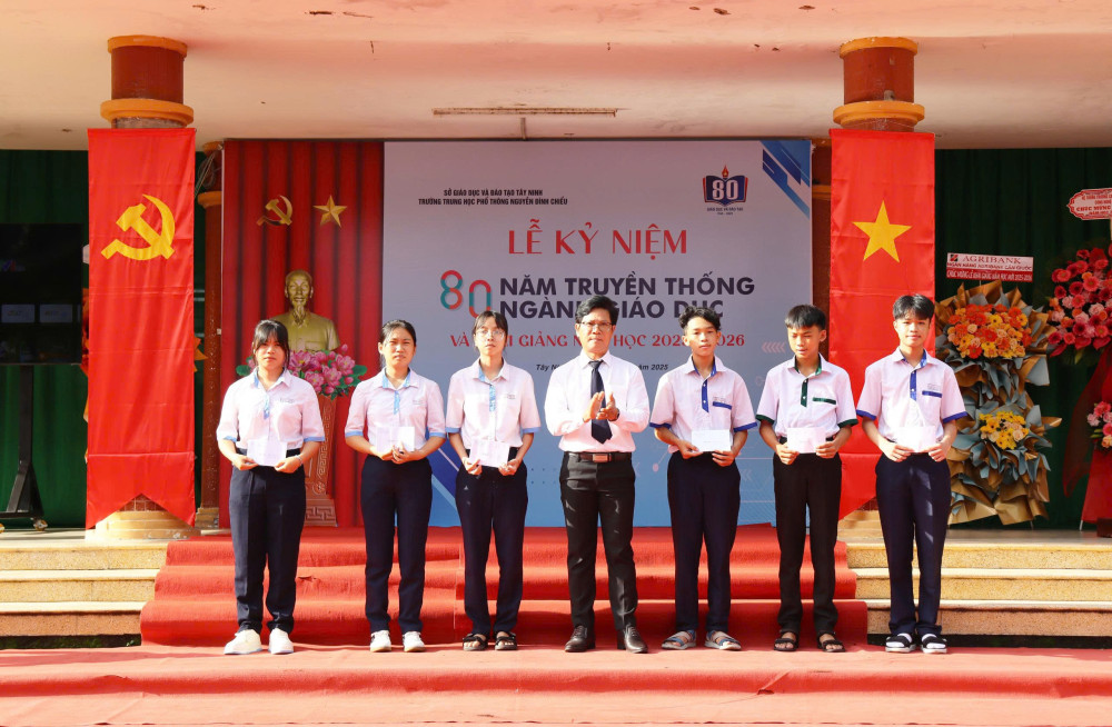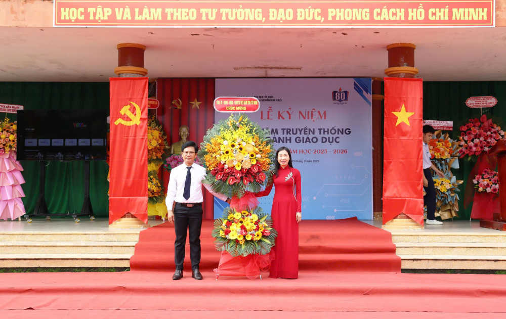 Sáng 05/9, Phó Trưởng đoàn chuyên trách Đoàn đại biểu Quốc hội tỉnh Tây Ninh Hoàng Thị Thanh Thúy đến dự Lễ kỷ niệm 80 năm thành lập Bộ Quốc gia Giáo dục và khai giảng năm học mới 2025-2026 tại Trường THPT Nguyễn Đình Chiểu, xã Mỹ Lộc, tỉnh Tây Ninh.