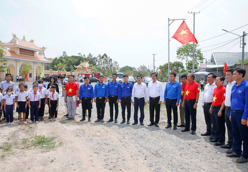 Năm 2023, Tỉnh Đoàn vận động Báo Người Lao động hỗ trợ 10.000 lá cờ để thực hiện 30 công trình thanh niên “Đường cờ Tổ quốc”. Mới đây, UBND tỉnh, Tỉnh Đoàn, UBND huyện Vĩnh Hưng phối hợp Báo Người Lao động tổ chức khánh thành công trình “Đường cờ Tổ quốc”, đoạn Đường tỉnh 831C từ Ngã ba Long Khốt đến Đồn Biên phòng Long Khốt. Tuyến đường cờ dài 6,7km, có 500 cột cờ 2 bên đường. Đây là công trình chào mừng kỷ niệm 48 năm Ngày Giải phóng miền Nam, thống nhất đất nước (30/4/1975 - 30/4/2023). Thực hiện công trình, cán bộ, công chức, viên chức toàn huyện đã chung tay đóng góp một ngày lương để xây dựng các cột cờ với tổng kinh phí 300 triệu đồng.