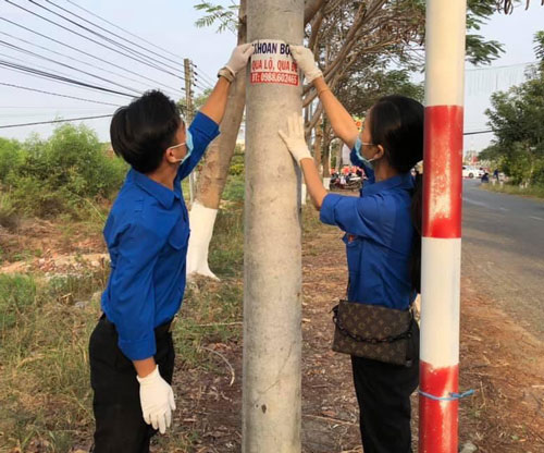 Tuổi trẻ Tân Hưng ra quân Ngày Chủ nhật xanh xóa bỏ quảng cáo trái phép, tuyên truyền người dân bỏ rác đúng nơi quy định