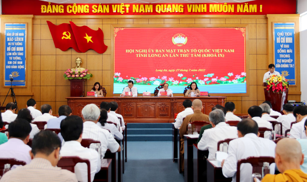 Chiều 27/7, UBMTTQ Việt Nam tỉnh tổ chức Hội nghị lần thứ Tám (khóa IX), nhiệm kỳ 2019 - 2024 nhằm đánh giá kết quả giữa nhiệm kỳ thực hiện Nghị quyết Đại hội đại biểu MTTQ Việt Nam tỉnh khóa IX; sơ kết thực hiện chương trình phối hợp, thống nhất hành động 6 tháng đầu năm 2022; xác định nhiệm vụ trọng tâm, giải pháp trong thời gian tới. Bí thư Tỉnh ủy, Chủ tịch HĐND tỉnh – Nguyễn Văn Được dự.