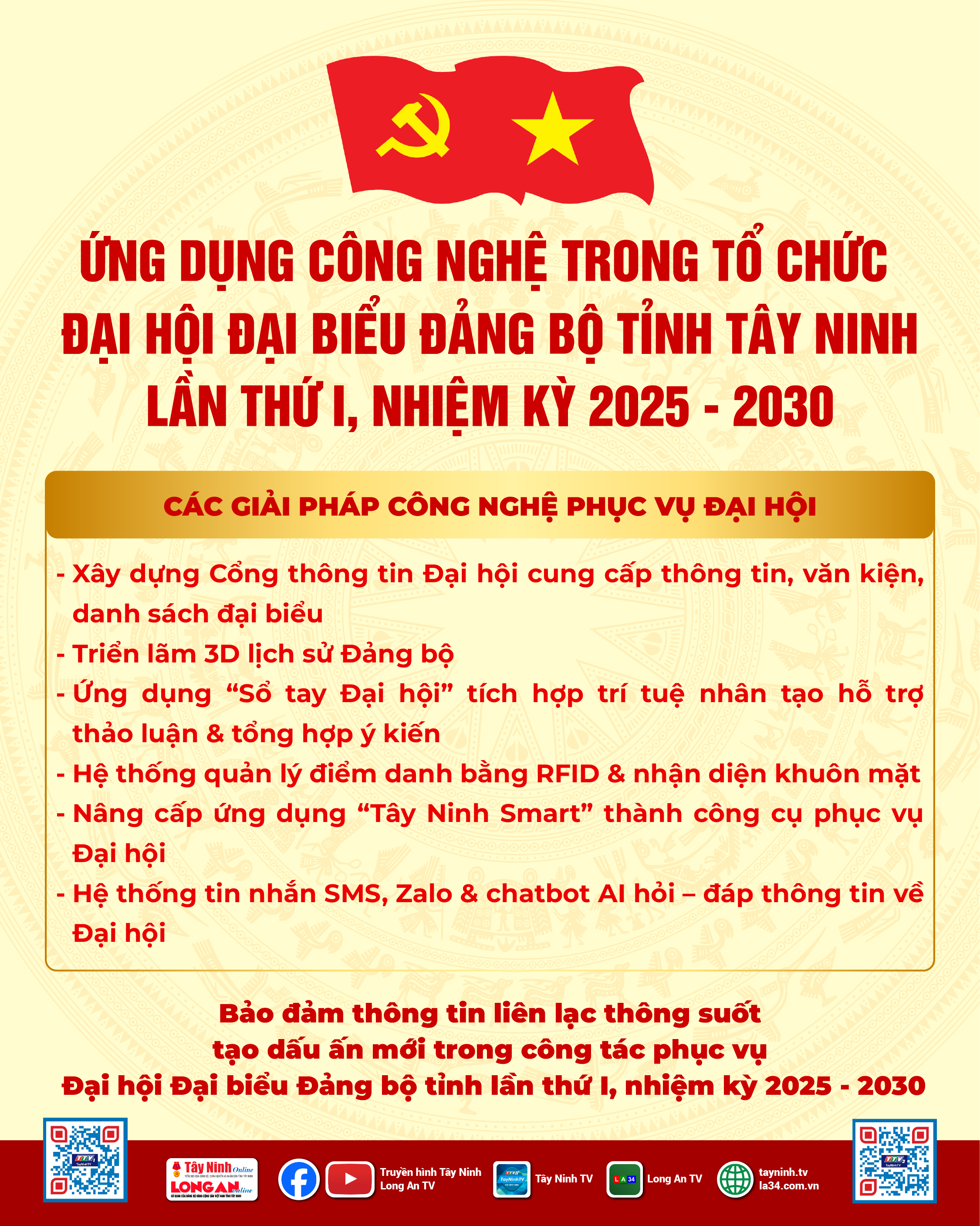 Ứng dụng công nghệ trong Đại hội Đại biểu Đảng bộ tỉnh Tây Ninh lần thứ I, nhiệm kỳ 2025-2030