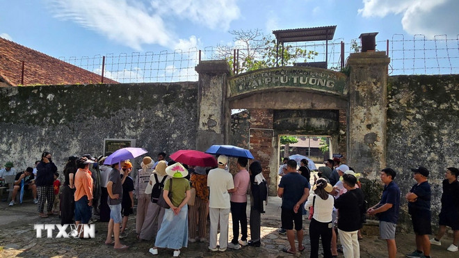 Du khách tham quan Trại Phú Tường ở Côn Đảo (Thành phố Hồ Chí Minh), trại giam được mệnh danh là "Chuồng cọp kiểu Pháp", nơi từng giam giữ các chiến sỹ cách mạng trong cuộc kháng chiến chống thực dân Pháp và đế quốc Mỹ (Ảnh: Huỳnh Sơn/TTXVN)