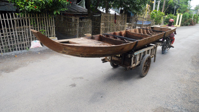Mỗi ngày bà Cúc bỏ túi được gần 1 triệu đồng nhờ công việc “phu” xuồng. Lưu thông trên lộ bà Cúc phải đặc biệt chú ý chạy chậm và cẩn thận để không ảnh hưởng đến người khác - Ảnh: NGỌC TÀI