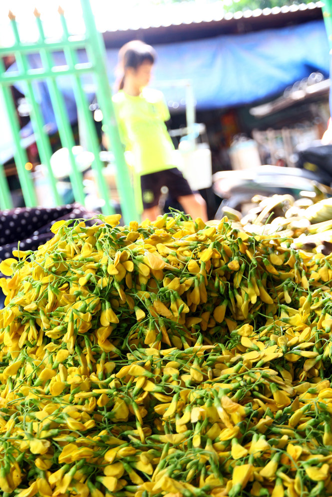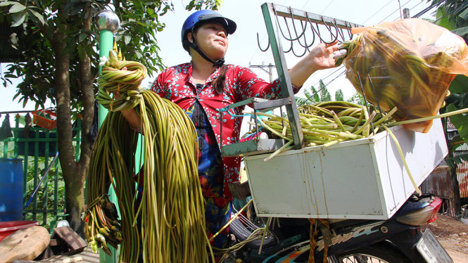 Cũng như cá linh, bông súng, bông điên điển cũng là sản phẩm đặc trưng của mùa lũ ở miền Tây. Mấy ngày nay bông điên điển bắt đầu xuất hiện khá ở chợ - Ảnh: CHÍ QUỐC