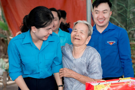 Cán bộ, đoàn viên, thanh niên huyện Đức Hòa, tỉnh Long An đến thăm Mẹ Việt Nam Anh hùng.