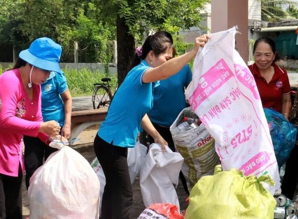 Phụ nữ thực hiện mô hình thu gom rác thải nhựa