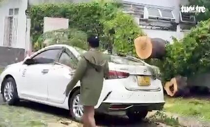 Ô tô đậu ngoài đường ở quận 12, bị cây phượng trong trường tiểu học đè trúng - Video- MINH HÒA.mp4