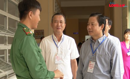 Sáng 28/6, Trưởng ban Chỉ đạo Kỳ thi tốt nghiệp THPT tỉnh Long An năm 2023, Phó Chủ tịch UBND tỉnh - Phạm Tấn Hòa kiểm tra công tác tổ chức Kỳ thi tốt nghiệp THPT năm 2023 tại TP.Tân An. Cùng đi có Giám đốc Sở Giáo dục và Đào tạo - Nguyễn Quang Thái; lãnh đạo UBND TP.Tân An.