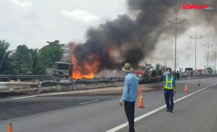 Khoảng 12 giờ 30 phút ngày 4/5, trên đường cao tốc Trung Lương – TP.HCM xảy ra vụ cháy xe tải chở nhớt. Vụ cháy làm ùn tắc giao thông kéo dài hàng cây số.