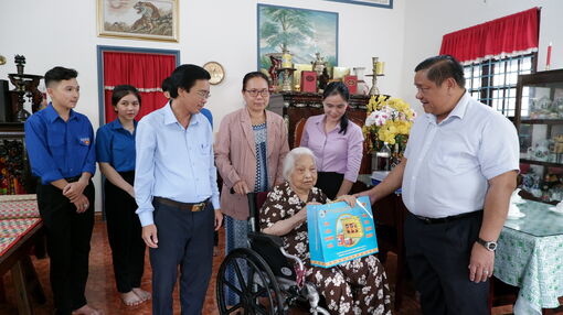 Đoàn công tác xã Tân Trụ đến thăm Mẹ Việt Nam Anh hùng Nguyễn Thị Đài nhân kỷ niệm 78 năm Ngày Thương binh - Liệt sĩ