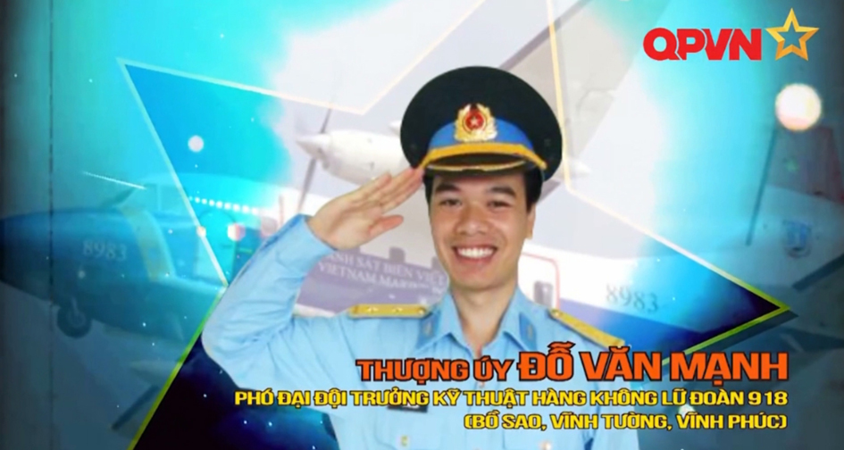 Thượng úy Đỗ Văn Mạnh. Phó đại đội trưởng kỹ thuật hàng không Lữ đoàn 918 (Bồ Sao, Vĩnh Tường, Vĩnh Phúc)