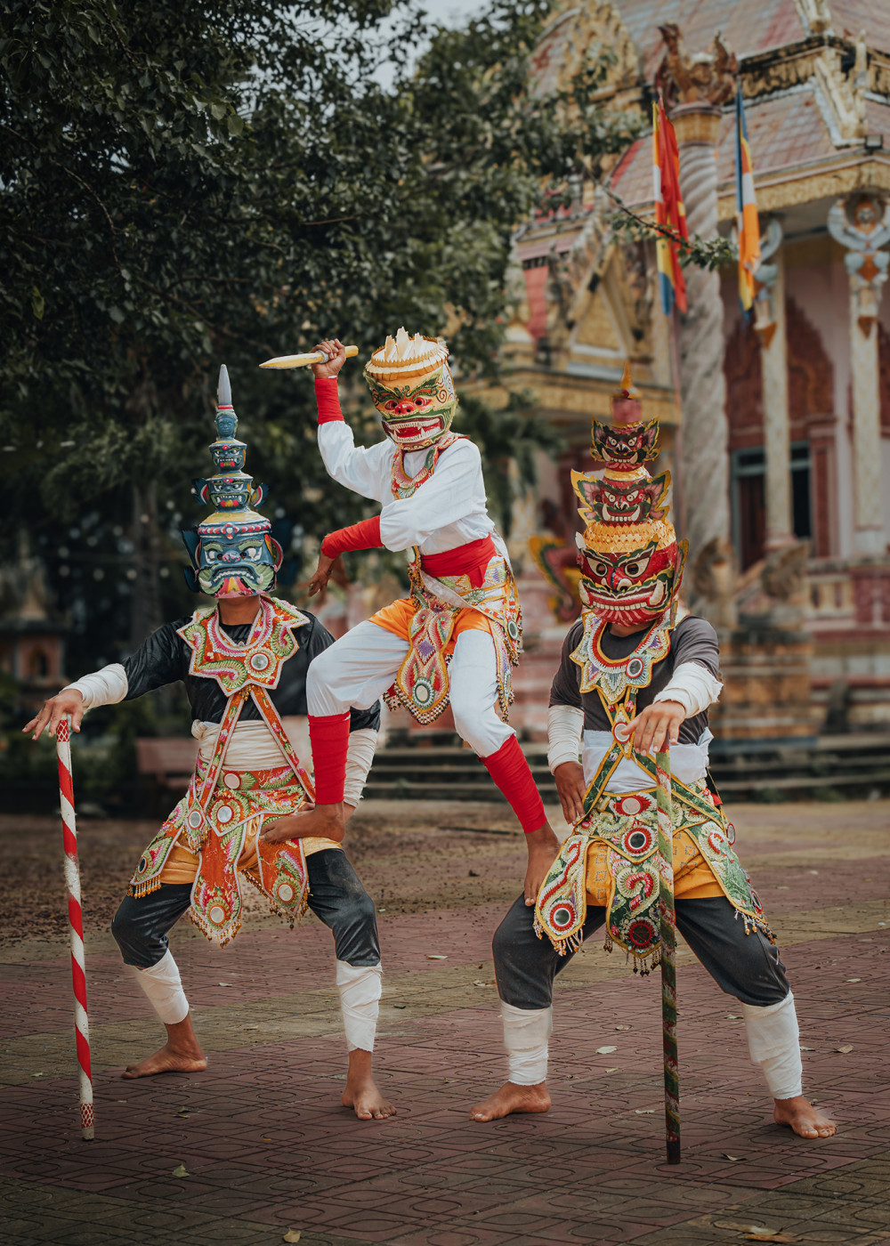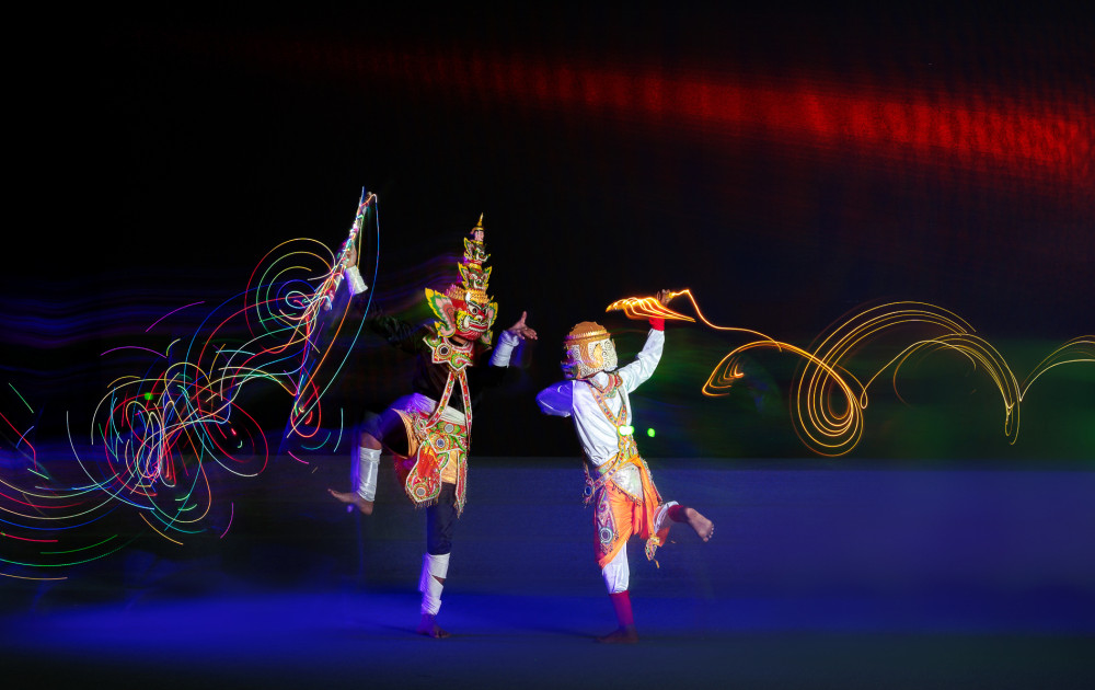 Múa chằn mang dáng dấp sử thi, gắn liền với các tích truyện cổ. Những bước chân mạnh mẽ, mặt nạ rực rỡ và phục trang lộng lẫy tái hiện hình ảnh các vị thần, chiến binh và linh vật trong văn hóa của người Khmer. Trong khi đó, múa Apsara lại mềm mại, uyển chuyển, tái hiện hình ảnh các vũ nữ thần thoại từng được khắc họa trên những bức phù điêu cổ xưa.