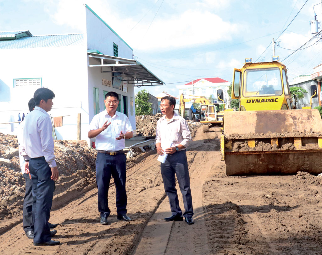 Huyện Tân Trụ tập trung nguồn lực để hoàn thiện hạ tầng, góp phần thúc đẩy KT-XH địa phương phát triển (Trong ảnh: Bí thư Huyện ủy Tân Trụ - Võ Trần Tuấn Thanh (giữa) cùng đại diện lãnh đạo các ngành huyện kiểm tra tiến độ dự án giao thông tại xã Bình Tịnh)
