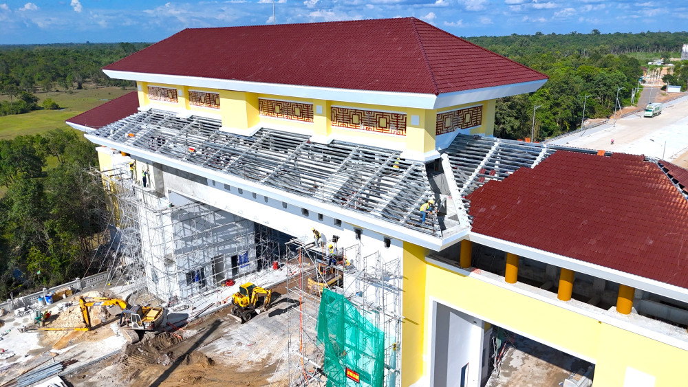 'Vượt nắng thắng mưa' đẩy nhanh tiến độ công trình Cửa khẩu quốc tế Tân Nam